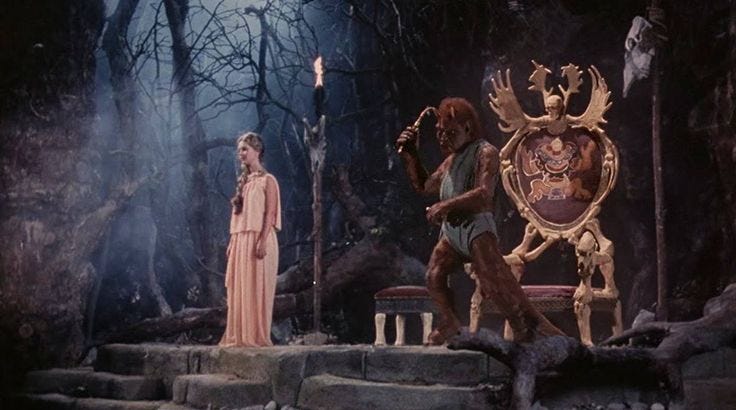 Actors in 21st century movies are regularly fused with special effects. Today, it’s a cinematic sight common enough that most audiences barely acknowledge it. However, whenever I see hybrid effects such as these being employed, I often think back to the marvellously inventive work of Ray Harryhausen, and specifically to the character of Calibos. In many ways, Calibos was a pioneer among movie monsters, and it’s doubtful that any number of later filmic creations could have existed without his trailblazing example.